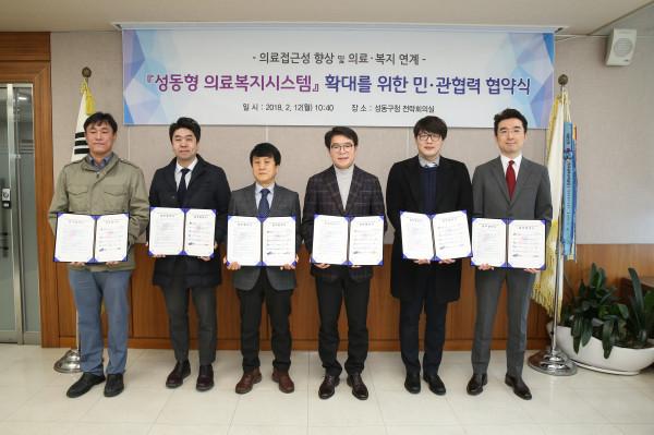 한편 구는 2015년부터 지역내 의료기관들과 업무협약을 체결해왔으며, 2018년 2월 현재 ▲민간기관(성동구의사회, 성동구치과의사회, 성동구한의사회, 성동구약사회, 한양대학교병원, 병원급 의료기관) ▲공공기관(시립·장애인치과병원) 등 총 111개 기관이 참여하고 있다.