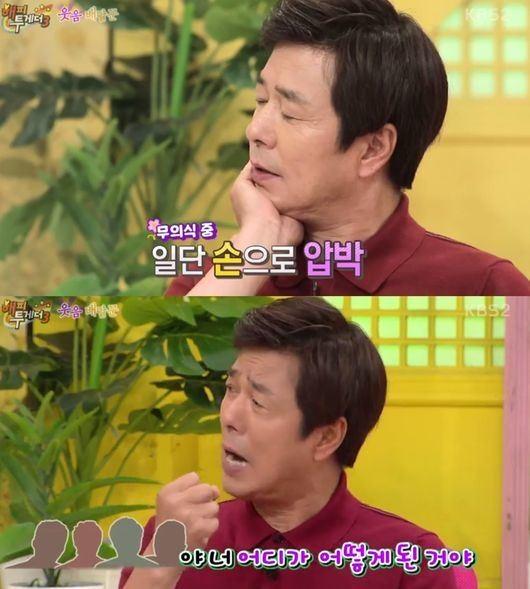 그는 "죽다가 살아난 기억이 있다"며 "덤프트럭 추돌 160바늘을 꿰맸다. 서있는 덤프트럭 밑으로 들어갔다. 어디선가 두들기는 소리가 들렸다. 지나가는 택시가 서서 병원으로 실려갔다. 턱 밑에 동맥이랑 식도가 있는데 무의식 중에 손으로 막았다"고 말했다.