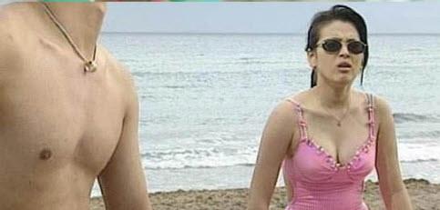 공개된 사진은 과거 인기리에 방영됐던 SBS 시트콤 '순풍 산부인과'의 한 장면으로 송혜교는 핑크색 계열의 비키니 수영복과 검은색 물안경을 착용, 해변에서 즐거운 시간을 보내는 모습이 담겨있다.