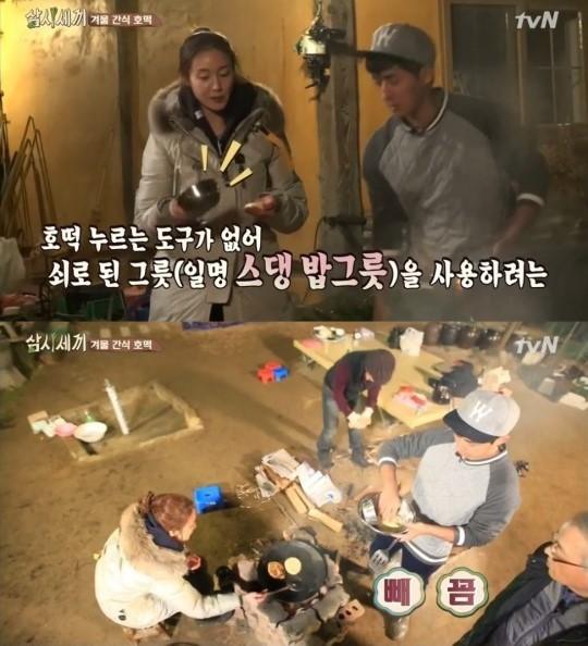 과거 방송된 '삼시세끼'에서는 최지우가 성공적으로 호떡을 만들었다. 당시 읍내에서 호떡믹스를 사온 출연자들이 직접 꿀호떡을 만드는 모습이 전파를 탔다. 최지우는 전날부터 연신 "호떡을 먹겠다"고 말했던 터라 직접 꿀호떡을 만드는 열정을 보였다.