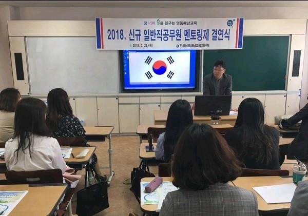 해남동초등학교 신규 공무원 추모 주무관은“이번 멘토링제를 통해 업무에 대한 궁금증을 해소하고 멘토와의 1대1 상담으로 학교현장에 빨리 적응할 수 있을 것으로 기대한다.”고 말했다