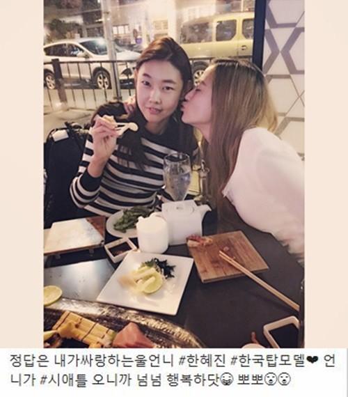 또 다른 사진에서는 "정답은 내가 사랑하는 우리 언니. 한국 톱모델, 언니가 시애틀 오니까 정말 행복하다. 뽀뽀"라는 글과 함께 사진을 게재했다. 사진 속 혜박은 미국 시애틀에 있는 식당을 방문해 맛있는 식사를 즐기고 있다.