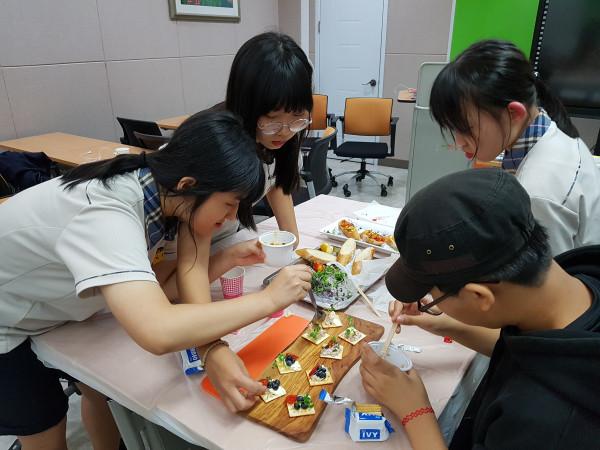 | ▲ 푸드스타일리스트 활동에 참여하고 있는 청소년들의 모습. (사진제공=성동구청) | ||