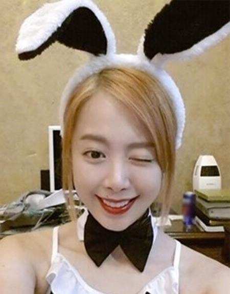 사진 속 그녀는 금발 머리에 바니걸 머리띠를 하고 깜찍한 표정을 짓고 있다.