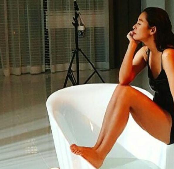 사진 속에서 예지원은 검은색 속옷을 입고 욕조에 앉아 포즈를 취하고 있다.