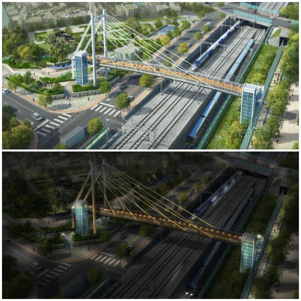 | ▲ ‘행당 과선 보도육교’의 주간·야간 모습 조감도. (사진제공=성동구청) | ||