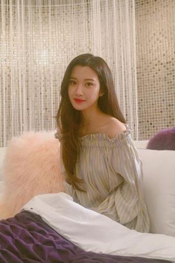 더욱이 사진 속 그녀는 긴 웨이브 머리를 늘어뜨린 채 카메라를 응시하며 미소 짓고 있으며, 특히 오프숄더 상의에 의해 노출된 가냘픈 쇄골은 여성미를 극대화시키면서 고혹적인 느낌을 자아냈다.