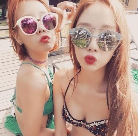 공개된 사진 속 이유애린과 손성아는 각각 검은색, 초록색 비키니를 입고 독특한 선글라스를 낀 채 카메라를 응시하고 있다. 두 사람의 굴욕없는 몸매가 시선을 사로잡았다.