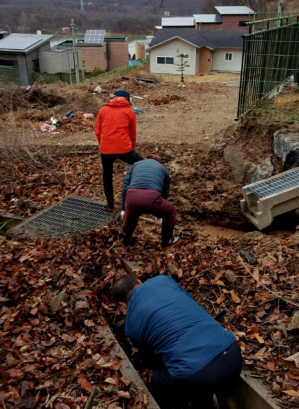 | ▲ 산사태 취약지역 점검·복구 중인 작업자들의 모습. (사진제공=용인시청) | ||