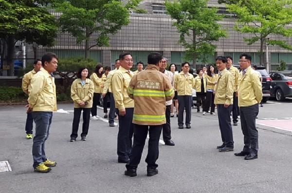 김종남교육장은“안전의식이 어느 때보다 강조되는 요즘, 합동소방훈련을 통해 귀중한 인명과 재산을 보호하고 재난발생 시 즉각 대응할 수 있는 위기 능력을 제고할 수 있는 소중한 시간이었다.”며“앞으로도 직원들이 평소 비상시 행동요령 등을 숙지하고, 화재에 대한 경각심을 키워 안전사고를 사전에 예방할 수 있도록 노력하겠다.”고 밝혔다.