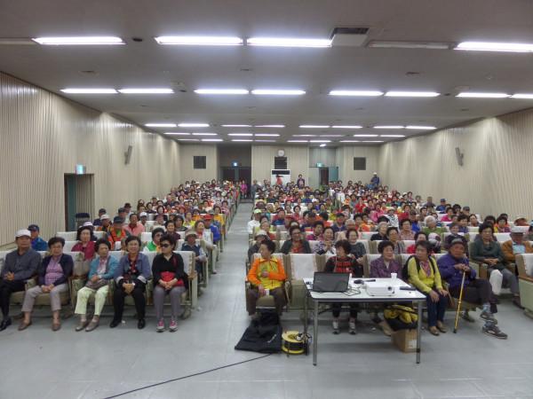 충남 아산시 노인일자리 수행기관 아산시니어클럽이 21일 충청남도 경제진흥원 대강당에서 노인일자리 및 사회활동 지원사업에 참여하고 있는 314명의 노인들을 대상으로 공익활동 활동교육을 실시했다. 사진은 교육을 듣고 있는 노인들의 모습. (사진제공=아산시청)