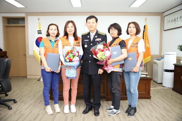 도봉소방서는 지난 21일 서장실에서 ‘찾아가는 다중교육 지도반’ 임명장 수여식을 가졌다. 다중교육 지도반은 의용소방대원 희망자 중 다중이용업소 교육에 대한 이해도가 높고 활발한 활동이 가능한 대원들로 구성됐다. 사진은 소방서장 및 참여자들이 기념촬영을 하는 모습. (사진제공=도봉소방서)