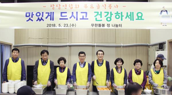 경기 수원시 팔달구에서는 23일 팔달연합회 회원 20명이 참여한 가운데 노숙인 실내급식소인 수원역 무한돌봄 정나눔터에서 '무료급식 봉사활동'을 실시했다. 사진은 참여자들이 급식 봉사에 앞서 기념촬영을 하는 모습. (사진제공=팔달구청)