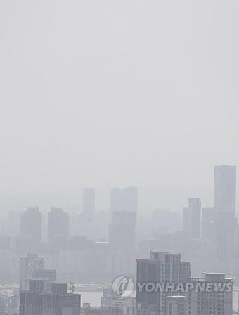 중국발 황사가 39일 만에 서울을 덮친 24일 오후 남산에서 바라본 서울 하늘이 뿌옇다.