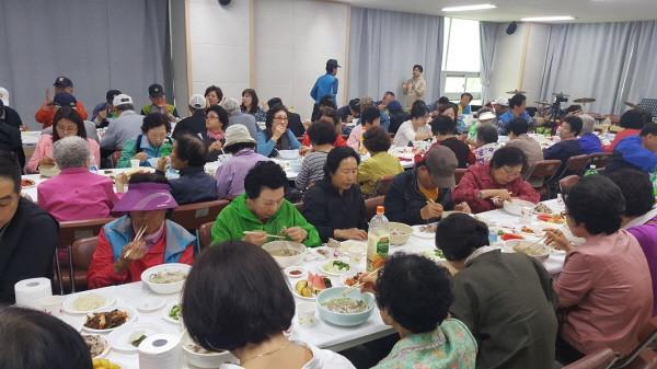 인천 연수구 옥련2동 방위협의회는 최근 주민센터 대회의실에서 지역내 보훈단체 노인 200여명을 초청해 삼계탕을 대접했다. 사진은 노인들이 식사를 하고 있는 모습. (사진제공=연수구청)