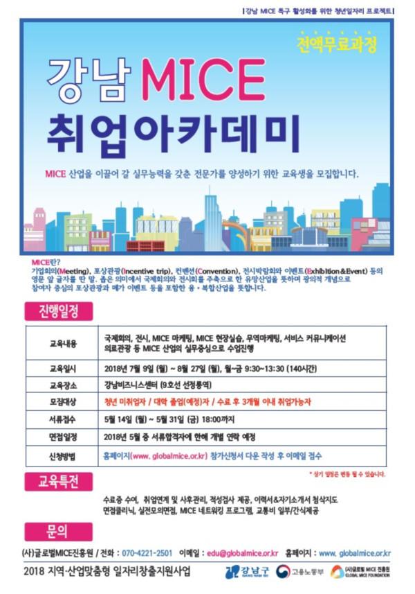 [시민일보=이대우 기자] 서울 강남구가 31일까지 ‘강남 MICE 취업아카데미’ 참여 교육생을 50명을 모집한다.