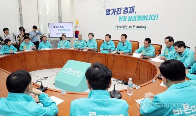 손학규 상임선거대책위원장 등이 참석한 가운데 29일 국회에서 열린 바른미래당 제1차 중앙선거대책위원회의에서 참석자들이 의견을 나누고 있다.