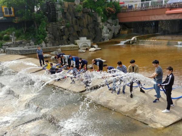 은평구가 최근 장마철을 앞두고 풍수해 예방을 위해 '불광천 주민 대피 훈련'을 실시했다. 사진은 관계자들이 불광천에서 양수기 가동 훈련을 진행하는 모습. (사진제공=은평구청)