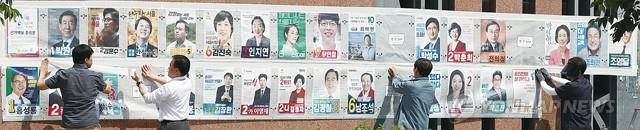 6.13 지방선거 공식선거운동 개시일인 31일 서울 송파구 잠실2동에서 관계자들이 선거벽보를 붙이고 있다. 선거 벽보에는 후보자의 사진과 성명, 기호, 학력, 경력, 정견 등이 게재돼 유권자는 거리를 오가며 후보자 정보를 한눈에 비교할 수 있다. 벽보를 찢거나 낙서 또는 무단 철거하면 2년 이하의 징역 또는 400만 원 이하의 벌금형을 받을 수 있으니 주의해야 한다.