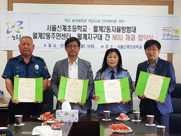 [시민일보=이진원 기자] 서울 노원구 월계2동 주민센터가 최근 서울신계초등학교 교장실에서 ‘학생 안전을 위한 업무협약’을 체결했다고 4일 밝혔다.