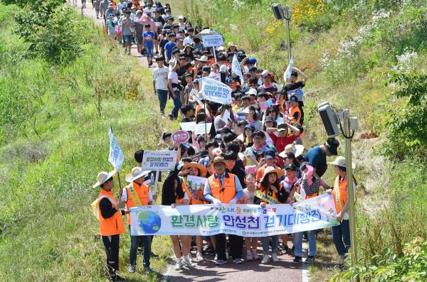 경기 안성시가 지난 2일 ‘제23회 환경의 날’을 맞이해 내혜홀 광장 일원에서 ‘환경의 날 기념식’과 함께 ‘제11회 산내들 푸른안성 환경축제’를 개최했다. 사진은 해당 행사의 일환으로 진행된 ‘환경사랑 안성천 걷기대행진’에 참여한 청소년 등 관계자들의 모습. (사진제공=안성시청)