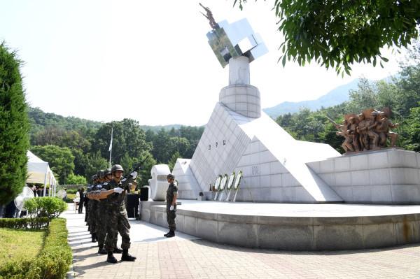 경기 하남시는 6일 현충탑(창우동 소재)에서 시민 등 500여명이 참석한 가운데 순국선열과 호국영령의 숭고한 희생정신을 추모하는 '제63회 현충일 추념식'을 거행했다. 사진은 추념식에 참석한 국군장병들의 조총발사 모습. (사진제공=하남시청)