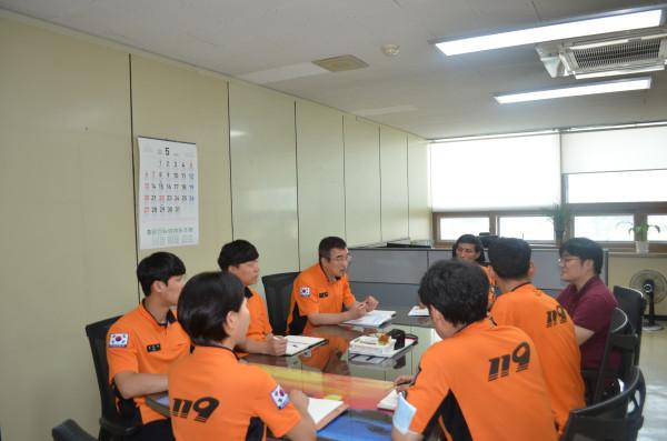 인천 남동소방서는 구급대원의 현장 활동시 감염방지 실태를 재평가하고 이를 보완해 119구급대 감염방지 환경을 조성하고자 지난 8일 회의실에서 ‘2018년 상반기 감염방지위원회’를 개최했다. 사진은 관계자들이 각종 감염병 의심환자 이송지원 대책에 관한 사항에 대해 논의하는 모습. (사진제공=남동소방서)
