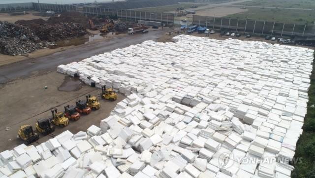 우체국이 직원 3만 명과 차량 3천200대를 동원해 전국에서 수거한 대진침대 매트리스가 17일 오전 11시 현재 마을 주민들의 반대로 충남 당진항 야적장으로 차량이 들어오지 못해 작업이 중단중이다.