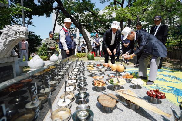 동대문구 재향군인회가 지난 16일 오전 10시30분 답십리동 장령당 공원에서 재향군인회 회원 등 30여명이 참석한 가운데 ‘6.25 순진(殉盡) 16지사 위령제’를 거행했다. 사진은 참여자들이 위령제’를 지내고 있는 모습. (사진제공=동대문구청)