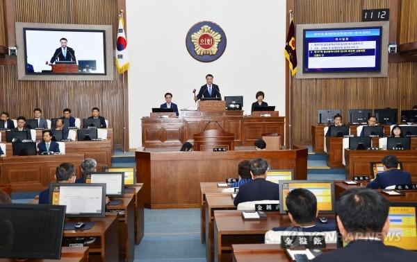 18일 울산시의회가 지방선거 직후 마지막 본회의를 열고 있다.