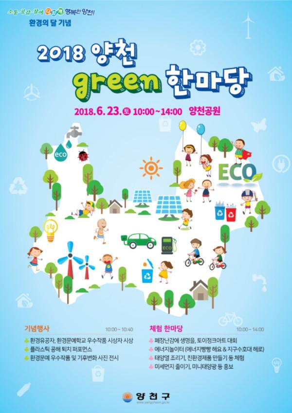 [시민일보=이대우 기자] 서울 양천구가 오는 23일 오전 10시~오후2시 제23회 환경의 날을 기념해 양천공원에서 ‘2018 양천 green 한마당’을 개최한다.