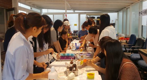 최근 서울 구로구 다문화 서포터즈단이 다문화가족지원센터에서 결혼이주여성 20명과 함께 '천연비누 만들기 체험'을 실시했다. 사진은 천연비누 만들기 체험을 하고 있는 참가자들의 모습. (사진제공=구로구청)
