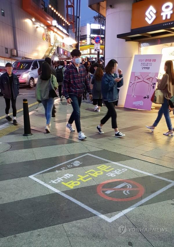 구는 지난 18일부터 강남역에서 신논현역 사이 18개 미디어폴에 금연거리 위치와 금연 홍보 영상을 송출하고, 야간시간에는 강남대로 보도 위 LED 조명으로 금연구역을 알리고 있다.