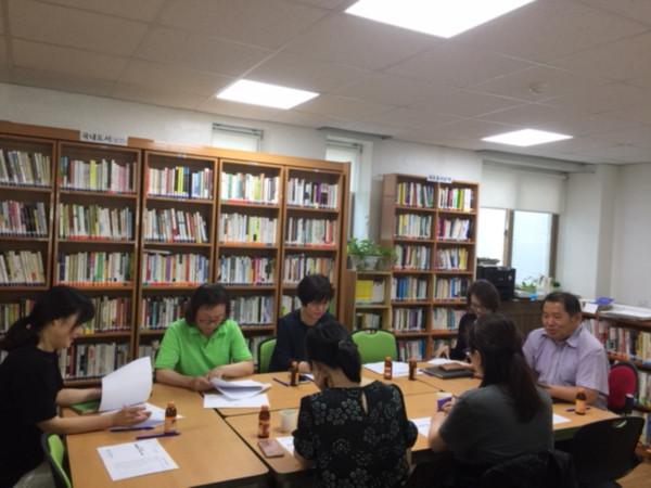 경기 수원시 영통구 매탄2동 새마을문고는 19일 매탄2동장과 새마을문고 회장, 문고 회원 등 10여명이 참석한 가운데 6월 월례회의를 개최했다. 사진은 참여자들이 회의하고 있는 모습. (사진제공=영통구청)