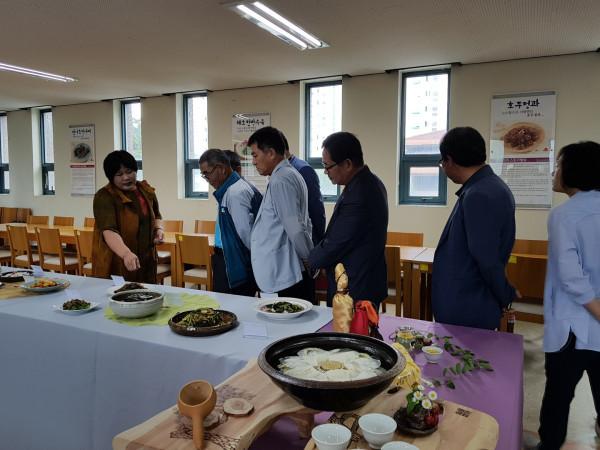 전남 장흥군은 지난 19일 농업기술센터 농업인교육관에서 ‘2018년 여성농업인 전문능력개발 발효저장음식과정 교육’ 수료식을 개최했다. 사진은 참여자들이 교육과정에서 배웠던 음식을 바라보는 모습. (사진제공=장흥군청)