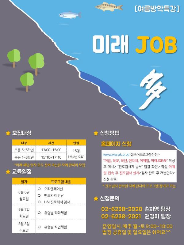 미래 JOB 多는 ‘미래의 다양한 직업들을 잡는다’라는 뜻으로, 지역내 청소년에게 대학생 멘토와 전문 직업인을 만나 멘토링 및 직업체험을 할 수 있는 기회를 제공하기 위해 마련된 프로그램이다.