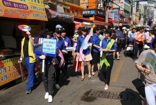 지난 21일 서울 구로구가 민관 합동으로 외국인 주민과 함께 하는 기초질서 확립 캠페인을 실시했다. 사진은 가리봉동 일대를 돌며 쓰레기 무단투기 방지를 위한 캠페인을 펼치고 있는 참가자들의 모습.(사진제공=구로구청)