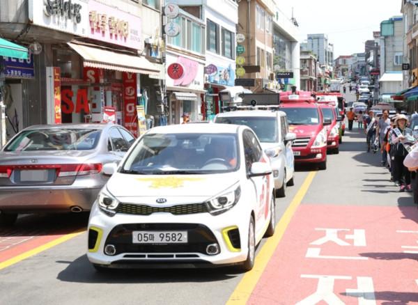 경기 연천소방서는 지난 22일 전곡시장 및 전곡역 일원에서 소방공무원과 의용소방대원, 군청 직원 등이 참석한 가운데 ‘6월 화재예방 및 소방차 길터주기 캠페인’을 실시했다. 사진은 소방차 길터주기 캠페인이 진행 중인 모습.(사진제공=연천군청)