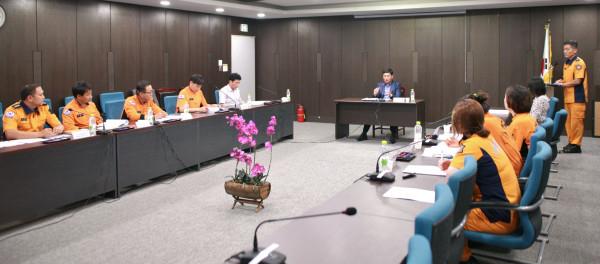 경기 화성소방서는 27일 소방서 2층 소회의실에서 현장활동 중 전염성 질병과 유해화학물질 접촉에 노출되기 쉬운 119구조·구급대원의 안전관리 강화와 대책 마련을 위해 상반기 감염방지위원회를 개최했다. 사진은 서승현 서장 및 관계자들이 회의하는 모습. (사진제공=화성소방서)