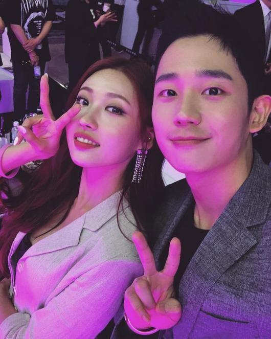이사배는 자신의 SNS에 글과 함께 사진을 게재했다. 공개된 사진 속 이사배와 정해인은 함께 카메라를 응시하고 있다.