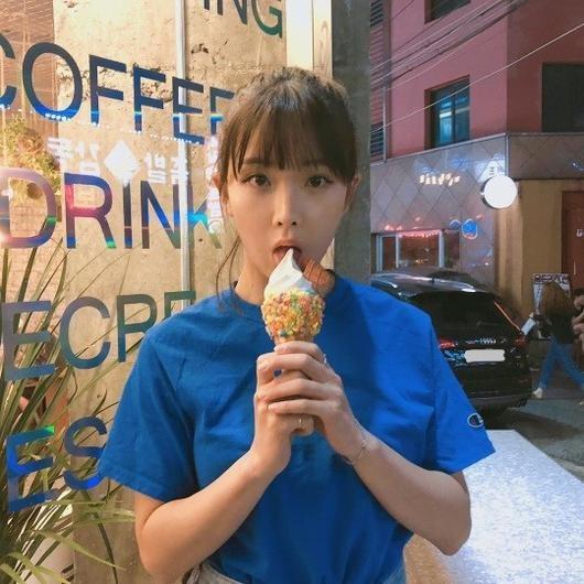 조현영은 자신의 SNS에 사진을 게재했다. 사지 속에는 조현영이 아이스크림을 입에 대고 앞에 있는 카메라를 응시하고 있는 모습이 담겨 있다.