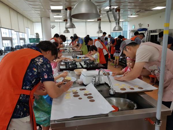 경기 동두천시 송내동 주민자치위원회는 지난 6월30일 아름다운문화센터 3층 쿠쿠홈에서 '아빠와 함께하는 쿠키 만들기' 두 번째 행사를 가족 20팀이 참여한 가운데 성황리에 개최했다. 사진은 참여자들이 쿠키를 만들고 있는 모습. (사진제공=동두천시청)