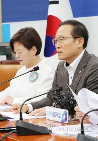 더불어민주당 홍영표 원내대표가 3일 오전 국회에서 열린 원내대책회의-민생평화상황실 팀장 연석회의에서 “민생평화 상황실을 오늘부터 가동한다. 직접 발로 뛰며 민생과 경제 현장 목소리를 꼼꼼히 듣겠다”고 발언하고 있다.