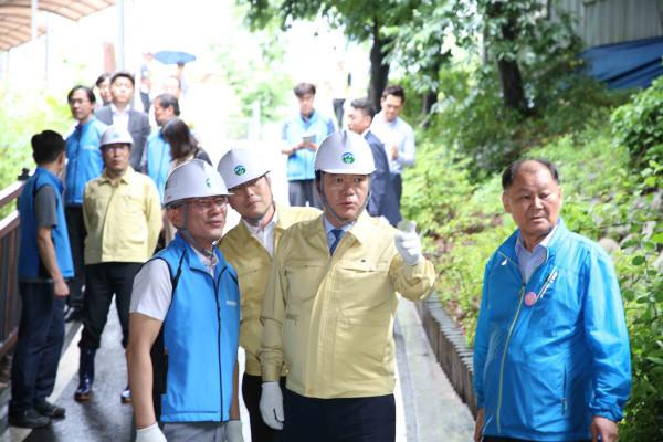그는 강수 상황과 빗물펌프장 가동 등 현황보고를 받고, 방재시설 구석구석을 직접 점검했다. 또 현장 관계자를 격려하며, 구민안전에 각별히 신경 써줄 것을 당부했다.