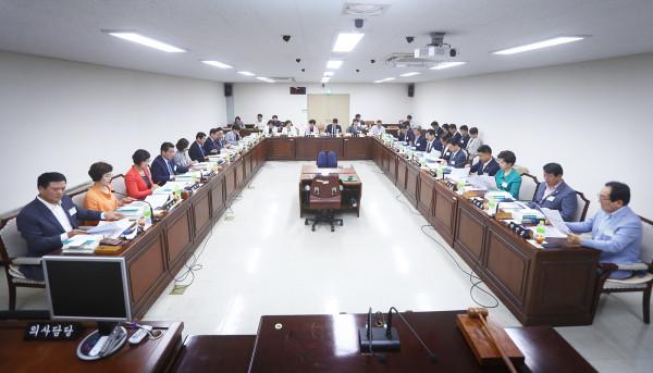 지난 3일 서울 송파구의회가 제1회의실에서 제8대 송파구의회 의원 간담회를 열고, 제8대 원구성, 개원식 계획, 의장단 선출 절차 등에 대한 내용과 2018년도 하반기 회기일정에 대한 토의를 진행했다. 사진은 토의를 진행 중인 의원들의 모습. (사진제공=송파구의회)