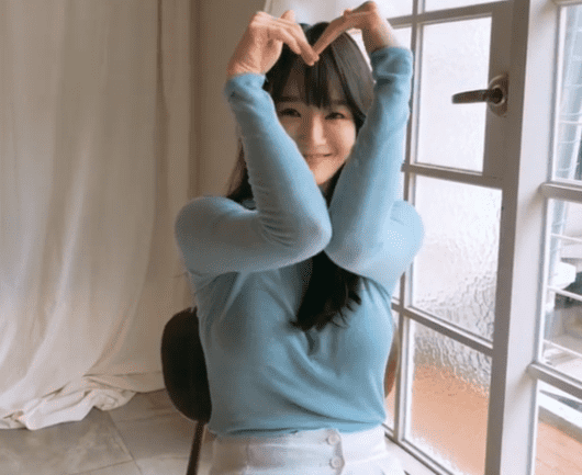 영상 속 강민경은 하늘색 시스루 긴팔티를 입고 창밖을 내다보다가 카메라를 보고 미소를 지으며 팔로 하트를 그리고 있다. 무심한 척 후 보여주는 환한 미소가 보는 이들의 마음을 흔든다.