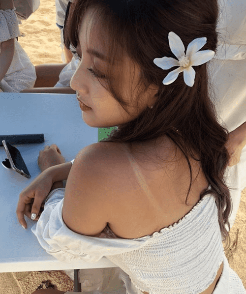 트와이스 멤버 지효가 햇빛에 탄 어깨를 공개했다.
