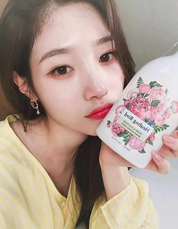 공개된 사진 속 정채연은 바디로션을 들고 카메라를 응시하고 있다.