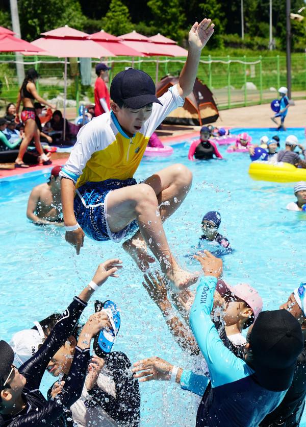 지난 7일 서울 동대문구 중랑천 제1체육공원 야외수영장을 찾은 아이들이 물놀이를 즐기며 신나는 시간을 보내고 있다. 야외수영장은 오는 8월19일까지 운영되며, 월요일은 휴장한다. (사진제공=동대문구청)