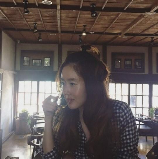 공개된 사진 속 김지수는 카페에서 차를 마시는 모습. 김지수는 잡티 하나 없는 윤기나는 피부로 동안 미모를 과시하고 있다.